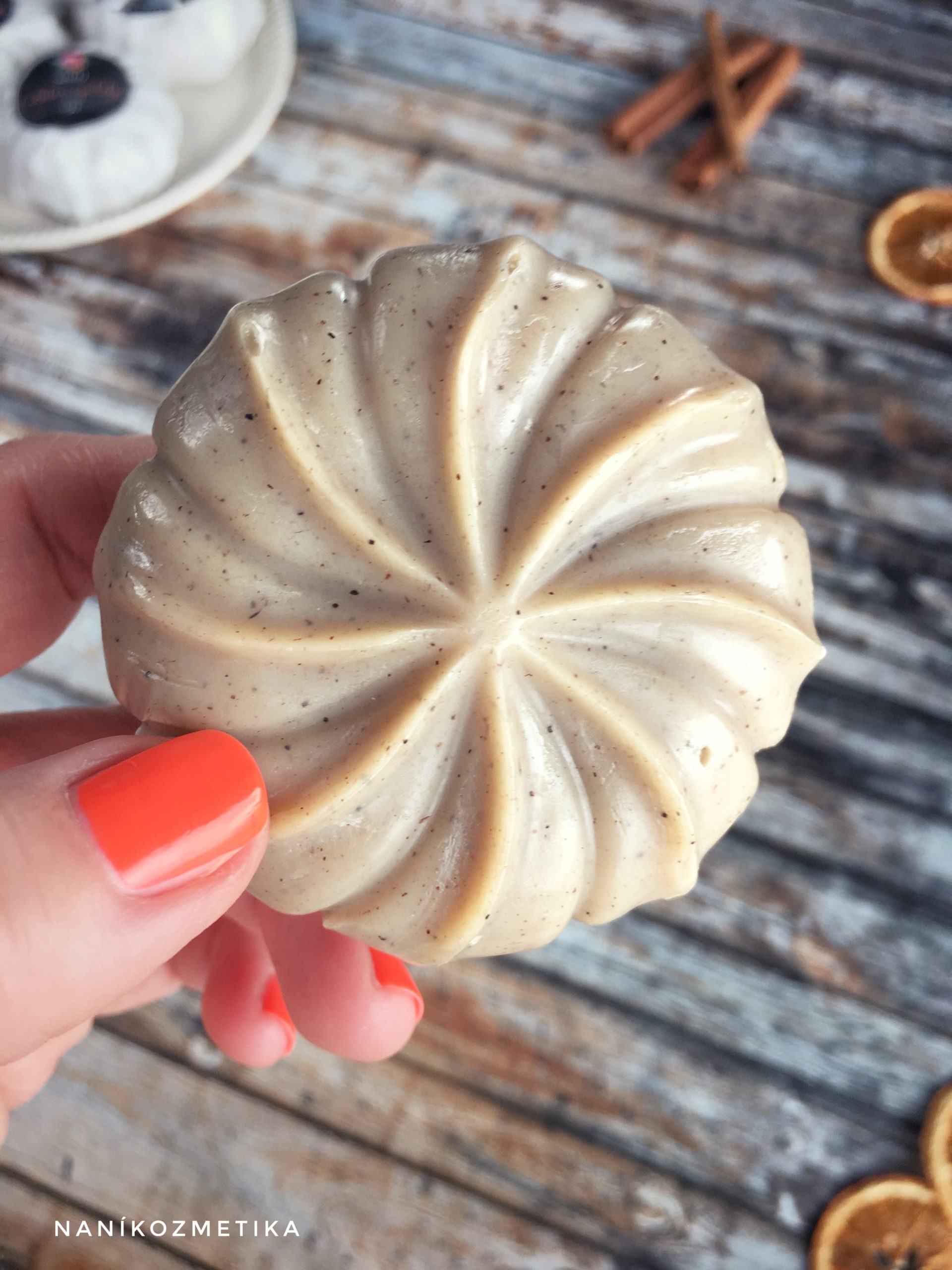 V procesu milnarjenja je cimet čudovit nadomestek barvil, saj ima zelo močan pigment, ki ga lahko prosto razporejam v masi, njegov fino mlet prah pa lahko deluje kot ločnica med dvema slojema ali pa ga vlijem v različne oblike, ki tako krasijo milo.